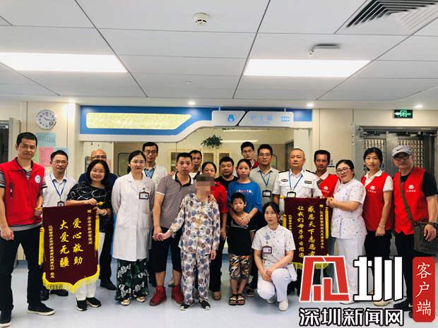 蘇蘭家人與市救助站人員、醫(yī)護(hù)人員合影(圖片由深圳市救助管理站提供)