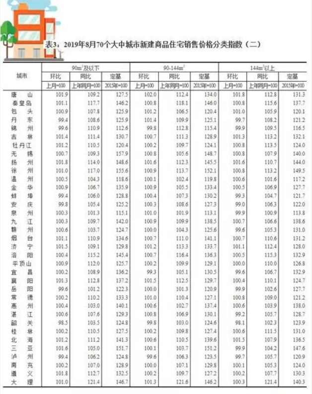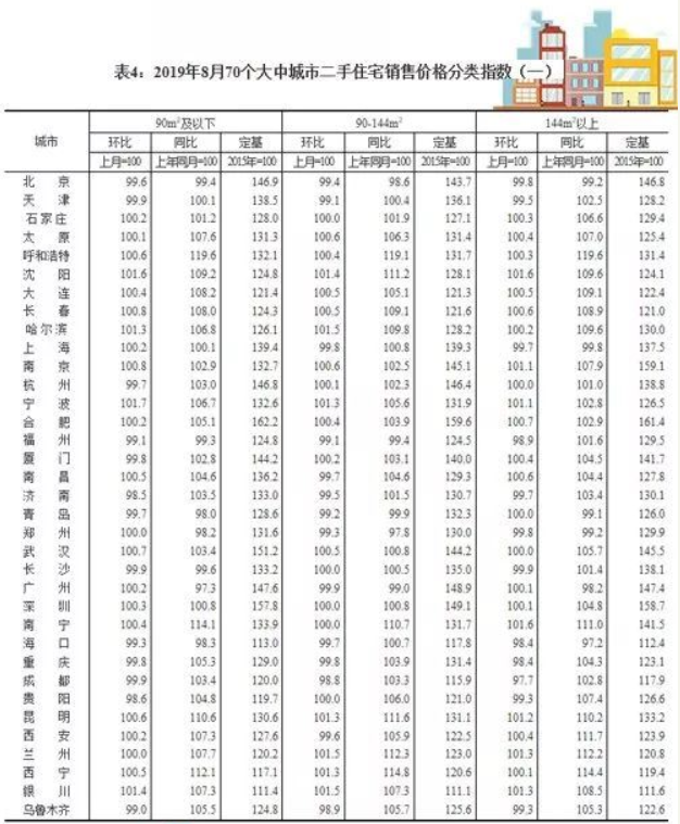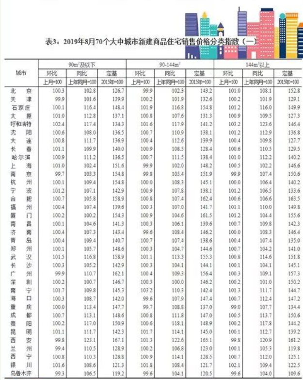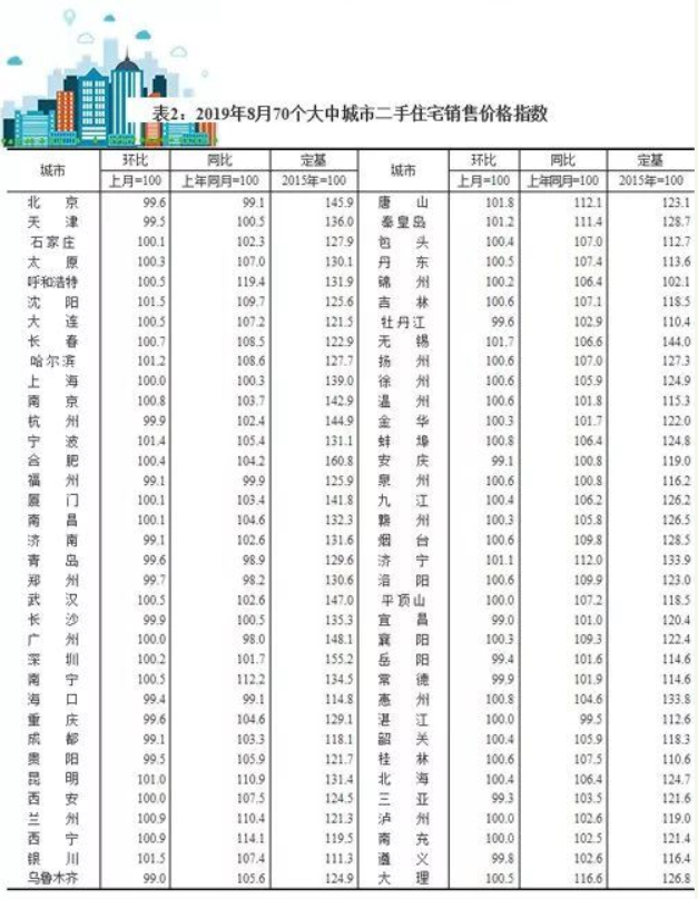 2019年8月份70個大中城市