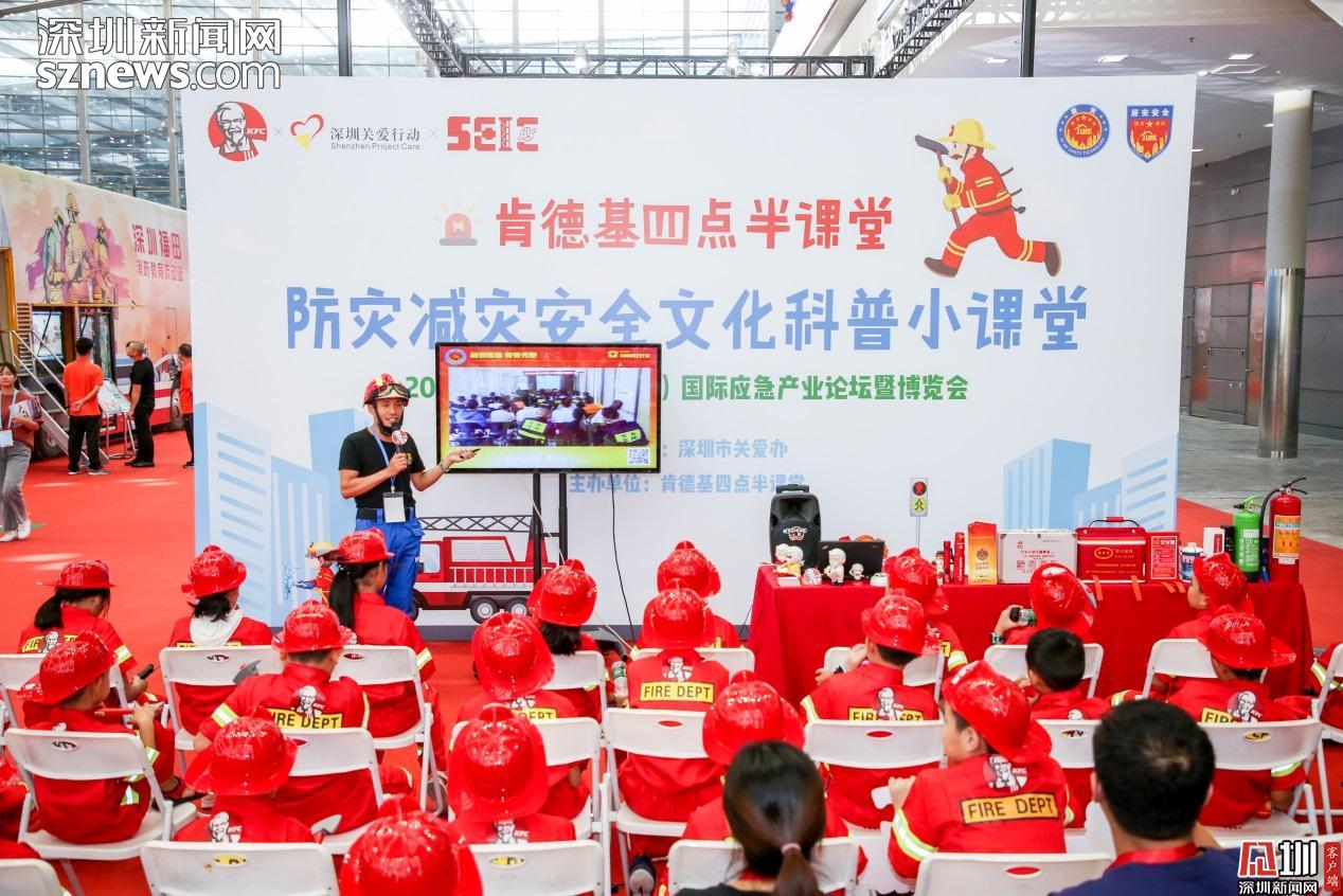 見圳客戶端、深圳新聞網(wǎng)2019年9月23日訊(見圳客戶端、深圳新聞網(wǎng)記者 陳彬)頭戴消防安全帽,手持mini滅火器,身穿靚麗正紅的消防服裝,9月21日,在深圳會(huì)展中心的深圳國際應(yīng)急博覽會(huì)上,一群可愛的小小消防員們吸引了全場的目光。原來,這是“肯德基四點(diǎn)半防災(zāi)減災(zāi)科普小課堂”正在深圳國際應(yīng)急博覽會(huì)上舉行。30名小朋友們裝備齊全,神采奕奕地 cosplay了一把“小小消防員”。他們認(rèn)真聽消防教官的科普演講,參觀消防教育科普雙層巴士,近距離感受消防車、應(yīng)急無人機(jī)等專業(yè)的防災(zāi)救援高科技裝備的硬核魅力……獨(dú)特的消防體驗(yàn)讓同學(xué)們十分興奮。