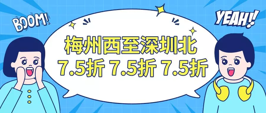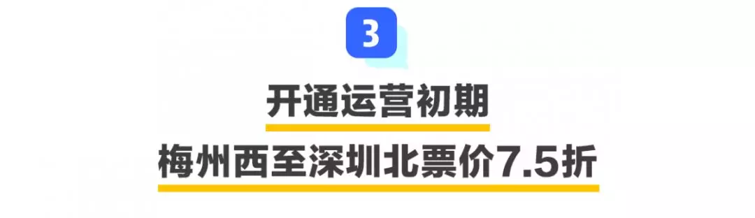 在開通運(yùn)營初期,行經(jīng)梅汕鐵路的各趟列車,將根據(jù)不同運(yùn)行區(qū)間、運(yùn)行時間和停站情況實行,6折、7.5折、8折、8.5折、9折五種折扣票價。