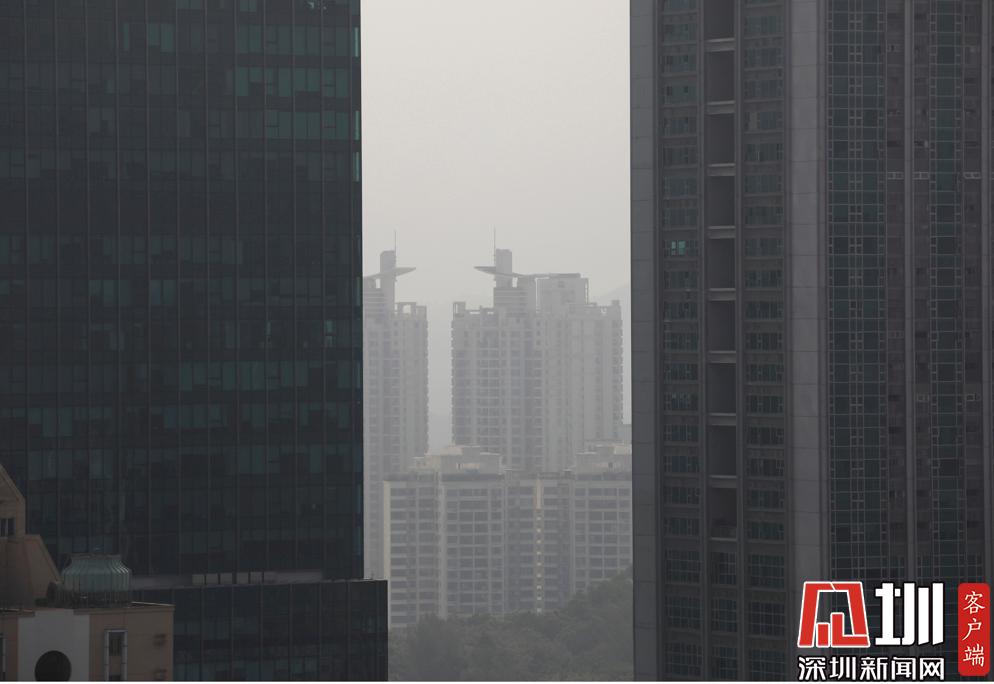 深圳福田區(qū)上空出現(xiàn)輕度灰霾。