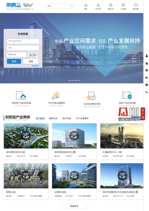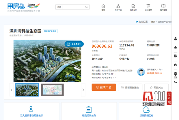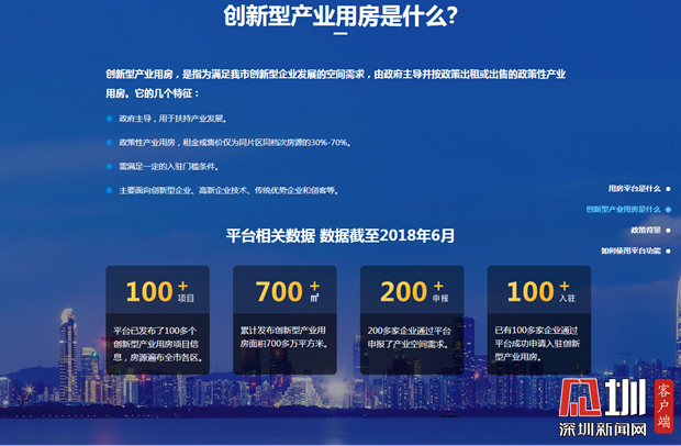 記者在平臺(tái)官網(wǎng)看到,平臺(tái)不僅提供創(chuàng)新型產(chǎn)業(yè)用房申請(qǐng)入口、平臺(tái)專享金融服務(wù)、企業(yè)空間需求申報(bào),還設(shè)有深圳產(chǎn)業(yè)空間地圖、720度全景看房,頁面簡潔直觀。