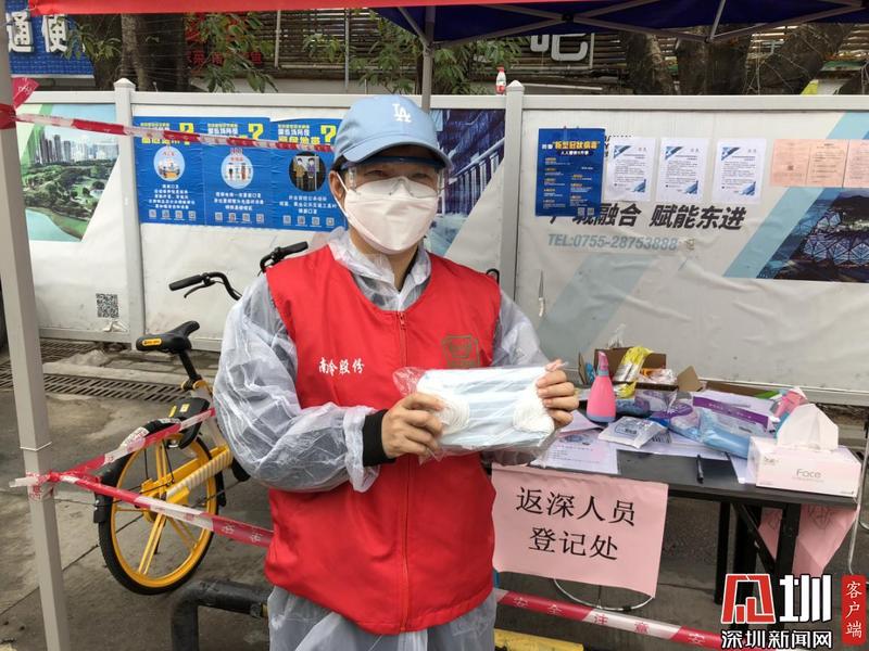 南嶺南路崗?fù)な悄蠋X村社區(qū)最大的出入口,人流、車流量大,隨著近幾日工廠企業(yè)開始陸續(xù)復(fù)工,每天出入的返深居民和車輛都絡(luò)繹不絕。羅秀蘭和李君海從2月3日開始,就“錯(cuò)時(shí)”守在這個(gè)崗位上?!艾F(xiàn)在返程的人越來越多,崗?fù)ね砩弦惨兄驹刚??!崩罹Uf,他白天工作沒有時(shí)間,就報(bào)名參加晚上的值守。