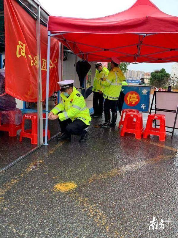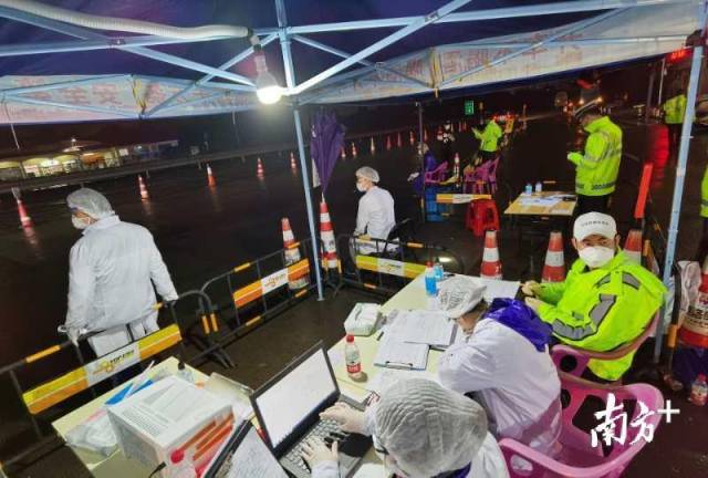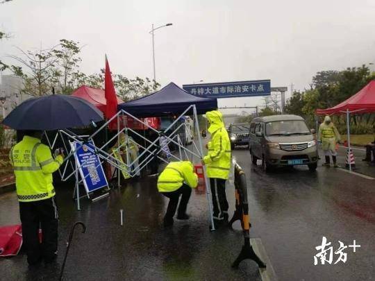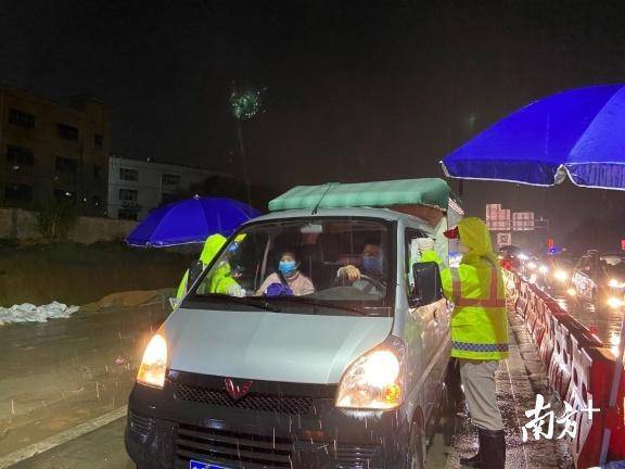 寶安區(qū)羅田檢疫站指揮部總指揮,石巖街道黨工委副書記、人大工委主任鄧亞虎,石巖街道副主任林志明和羅田交通聯(lián)合檢疫站臨時(shí)黨支部黨員冒雨檢查。當(dāng)晚,深圳市公安局經(jīng)偵支隊(duì)支援4名民警在現(xiàn)場冒雨防疫檢查。