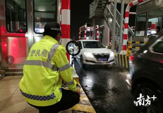 龍城街道黨員干部、工作人員與龍崗區(qū)退役軍人義工隊(duì)、龍崗交警組成防控隊(duì)伍,借助現(xiàn)場高速雨棚的遮擋,對(duì)進(jìn)深車輛一一進(jìn)行排查。