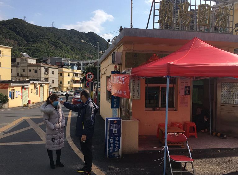 2月16日上午10時,在鹽田區(qū)城中村朝陽圍村,村長萬建新帶隊守住全村僅剩的一個出入口,每天2班倒,從早上8點到晚上8點,為出入人員測量體溫,保護(hù)自己的家園。據(jù)悉,該村共有2000名居住人員,原來村里5個出入口,已經(jīng)封閉了4個,現(xiàn)僅剩一個。(記者鄧雪婷)