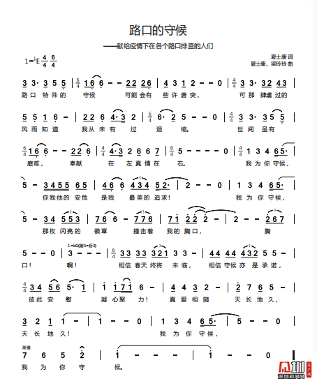 近日,龍崗區(qū)文化廣電旅游體育局職工夏士康、梁玲玲聯(lián)合北京自由音樂人劉珂銘創(chuàng)作的歌曲《路口的守候》正式推出。“路口,特殊的守候,可能會有些唐突,可那肆虐過的風雨知道,我從未有過退縮……”該歌曲以抗疫一線實錄為背景,深情表達了對以“路口戰(zhàn)士”為代表的抗疫戰(zhàn)士們的敬愛之情,及眾志成城、抗疫必勝的堅定信念。