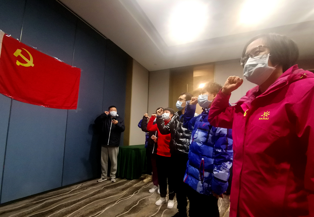 見圳客戶端·深圳新聞網(wǎng)2020年3月9日訊 3月9日晚7時(shí)30分,廣東省支援荊州醫(yī)療隊(duì)組織新黨員入黨宣誓活動。深圳邊檢總站醫(yī)療隊(duì)和北大深圳醫(yī)院醫(yī)療隊(duì)分別在荊州市第一人民醫(yī)院分會場和監(jiān)利縣廣東醫(yī)療隊(duì)駐地酒店分會場組織黨員參加了宣誓活動。經(jīng)廣東省支援荊州醫(yī)療隊(duì)臨時(shí)黨委批準(zhǔn),來自深圳邊檢總站醫(yī)院醫(yī)療隊(duì)的護(hù)士許梅與來自北大深圳醫(yī)院的護(hù)士曹慧敏、趙晨曦作為新黨員火線入黨。