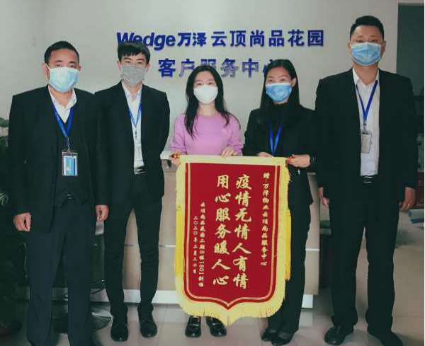 云頂尚品小區(qū)業(yè)主為了感謝物業(yè)在疫情防控期間堅守崗位,也自發(fā)組織捐款21250元為物業(yè)單位員工獻愛心,并送上寫著“疫情無情人有情,用心服務(wù)暖人心”的錦旗。