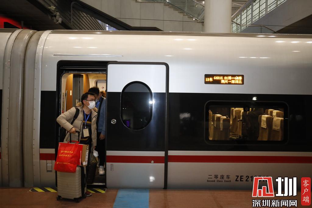 見圳客戶端·深圳新聞網(wǎng)2020年3月19日訊(見圳客戶端、深圳新聞網(wǎng)記者 陳婕 鐘鴻冰 楊浩翰)3月19日22時54分,G4318/5次列車抵達深圳北站。這是深圳市首趟“點對點、一站式”集中精準輸送湖北務工人員返深復工專列。本次列車始發(fā)站為湖北荊州,共接回荊州籍返深返崗人員169人。