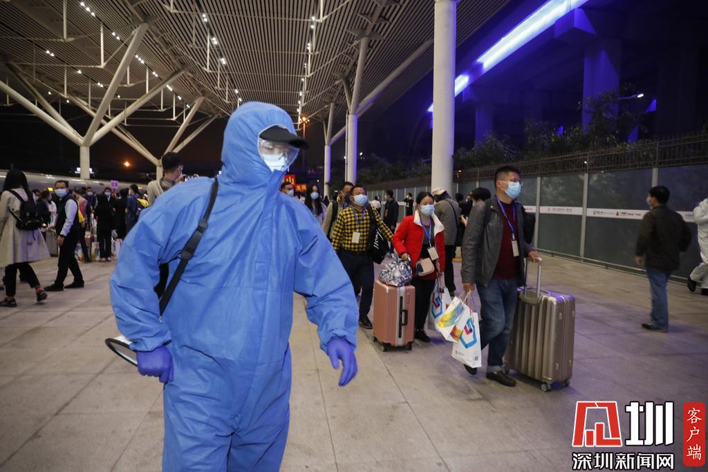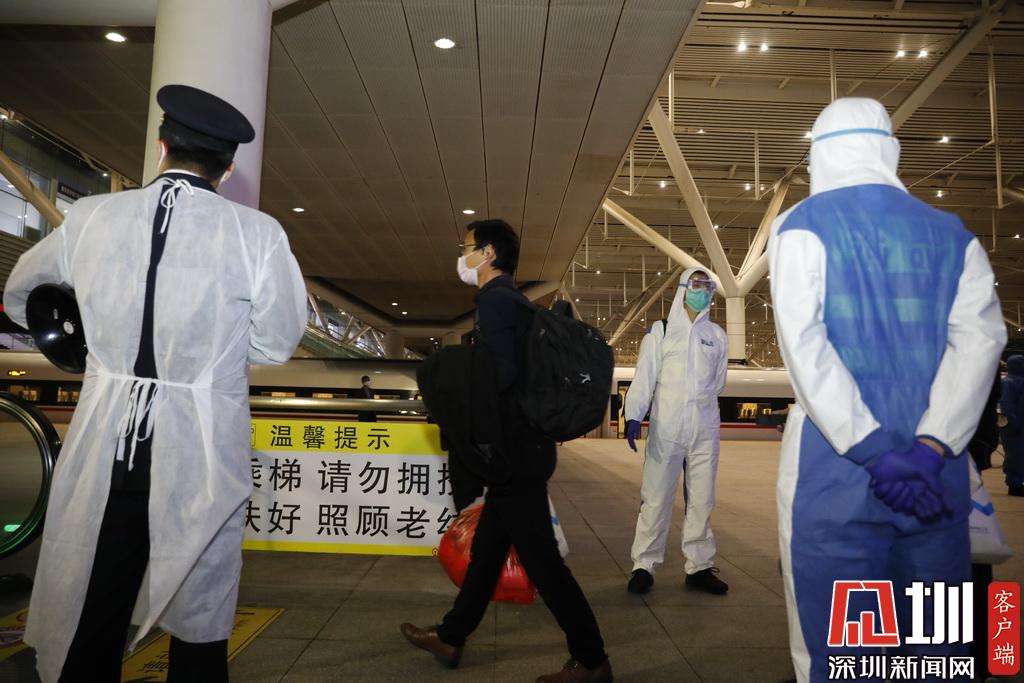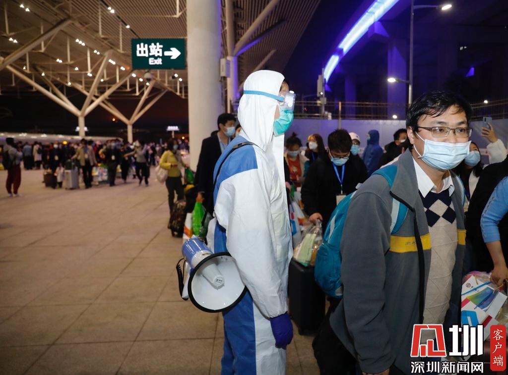 深圳北站客運車間黨總支書記龔建力告訴記者,為了確保湖北返深專列安全??空九_,深圳北站提前加強了清潔工作,并增派相關(guān)工作人員,確保返深湖北籍乘客有序安全出站。