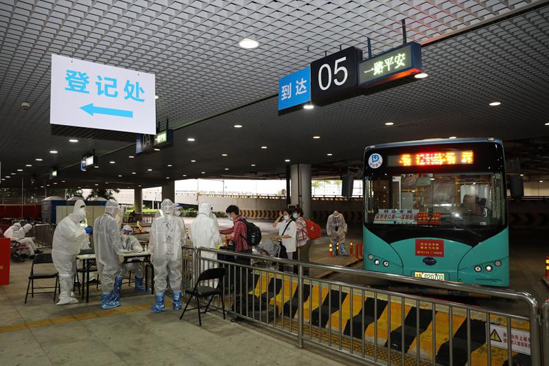 經(jīng)過升級改造后,分撥轉運點由原5個巴士車位增加至15個巴士車位,其中1號至7號巴士站臺為入境旅客下車點,8號至15號巴士站臺為入境旅客登車點,實現(xiàn)出入分道。新增座位600個,同時拓寬登記區(qū)域面積,為旅客排隊、工作人員登記信息提供了更為寬敞的空間和更為明確的指引。