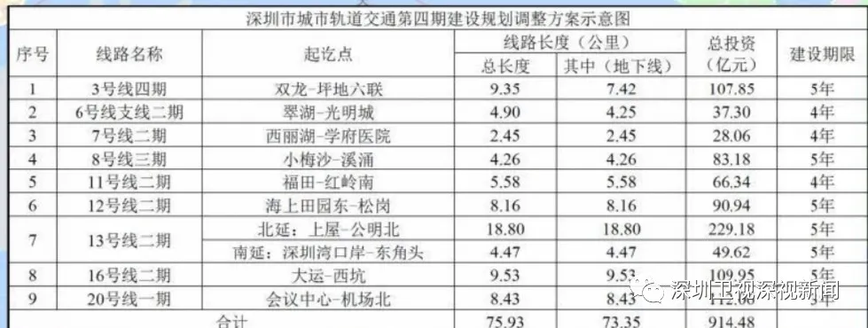 16號(hào)線二期工程自大運(yùn)站至西坑站,線路長(zhǎng)度9.53公里,為地下線,采用A型車6輛編組;總投資109.95億元,建設(shè)工期5年。