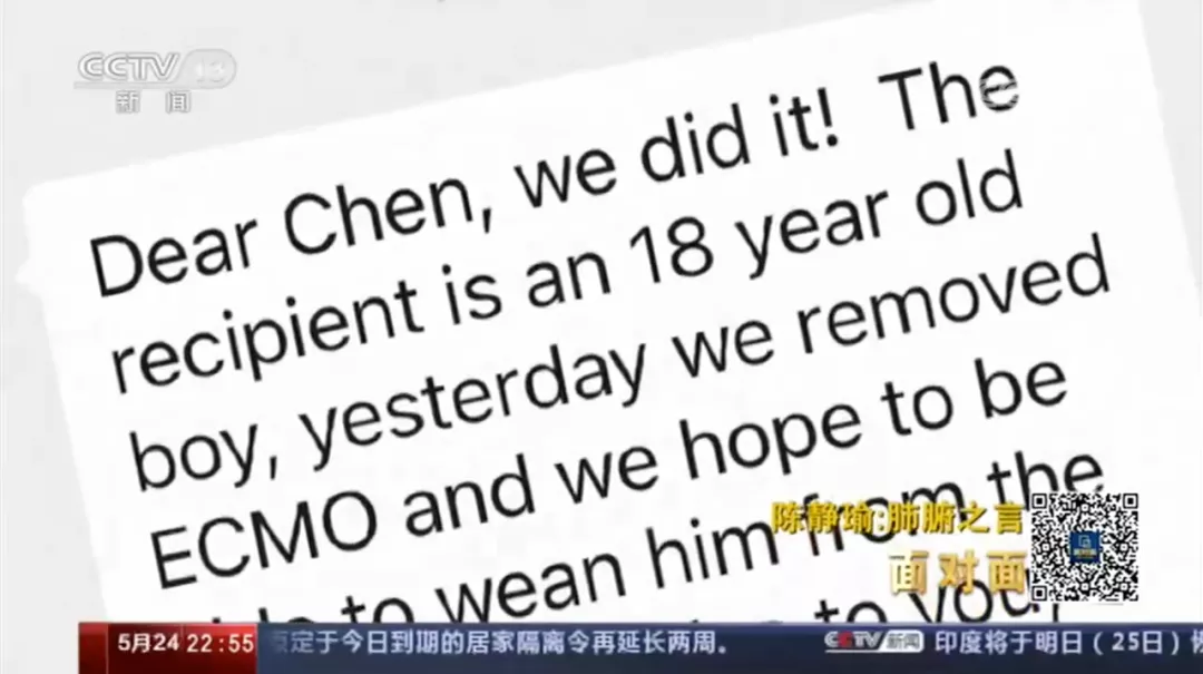今年3月,陳靜瑜以全國(guó)人大代表的身份發(fā)出了一份《關(guān)于組建國(guó)家級(jí)肺移植團(tuán)隊(duì)進(jìn)行新冠肺炎肺移植的建議》,建議組織國(guó)家肺移植團(tuán)隊(duì)赴武漢全力救治晚期患者,降低病亡率。