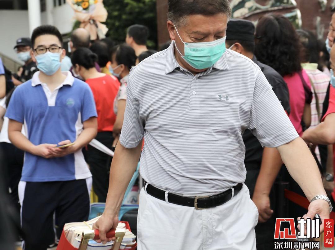 深圳高級中學(xué)考點(diǎn)外家長受捧鮮花、滿懷期待。