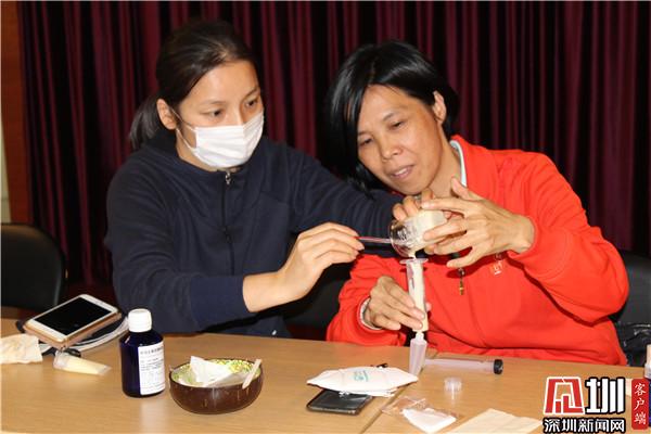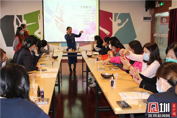 據(jù)了解,劉燦輝浸染芳香研究十幾年,有著豐富的芳療經(jīng)驗。在課堂上,劉燦輝耐心地引導(dǎo)社區(qū)婦女在芳香中忘掉壓力和煩惱,體驗愉快,開拓出精神力量。20位社區(qū)婦女還在老師的帶領(lǐng)下,動手制作潤手霜。大家相互幫助,彼此配合,經(jīng)過調(diào)試、攪拌、加熱、瓶裝等過程,每位學(xué)員都擁有了一支專屬于自己的潤手霜。