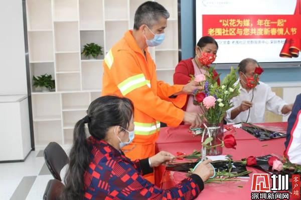 見圳客戶端·深圳新聞網2月17日訊(記者 劉嘉敏 通訊員 楊紀歐)2月14日是大年初三,恰逢情人節(jié),深圳市羅湖區(qū)桂園街道老圍社區(qū)邀請企業(yè)員工、環(huán)衛(wèi)工人、困難家庭、退休老人等五對夫妻代表到社區(qū)插花。五對夫妻以花為媒,互訴衷腸,表達愛的心聲,與社工一起共度一個又溫馨又浪漫的節(jié)日。老圍社區(qū)黨委書記許少瓊給五對夫妻拜年,向他們一直以來對社區(qū)工作的支持表示感謝,尤其感謝他們在這個特殊的春節(jié),留在深圳過節(jié),并堅守崗位,服務更多人。同時,許少瓊祝五對夫妻家庭幸福,感情甜蜜,生活順心如意。