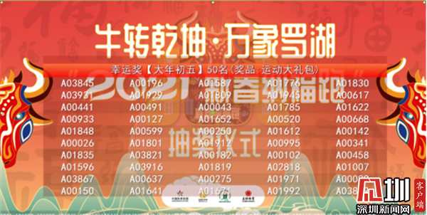 除夕、正月初二、正月初五、正月初八、元宵節(jié)五次隨機抽取幸運者如下: