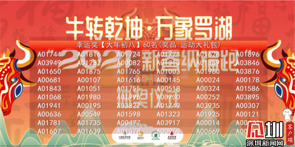 值得一提的是,本次活動不限地域、不限時間,不僅得到了羅湖市民的熱捧,也得到了深圳各個區(qū)域和深汕特別合作區(qū)的市民積極參與,讓新春的福氣遍布深圳。春節(jié)假期期間,在深圳的各個公園和綠道都能看到市民運動的身影,同時為了鼓勵留深人員,積極參與活動,組委會精心準備了200余份運動大禮包,分別在除夕、正月初二、正月初五、正月初八、元宵節(jié)分五次隨機抽取幸運者獲得運動大禮包。