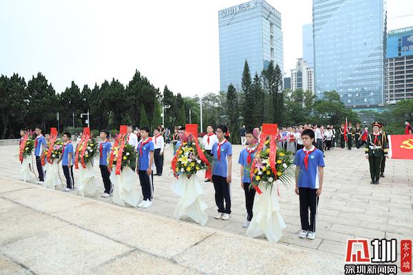 見圳客戶端·深圳新聞網(wǎng)4月4日訊(見習(xí)記者 郝鈺詩 實(shí)習(xí)生 覃鈺清 通訊員 鄒祁瑩)4月4日,清明節(jié),深圳市革命烈士陵園內(nèi)莊嚴(yán)肅穆,“緬懷先烈 強(qiáng)信念 學(xué)習(xí)先鋒 跟黨走”羅湖區(qū)少先隊(duì)清明祭英烈活動(dòng)在此舉行?;顒?dòng)旨在教育引導(dǎo)少先隊(duì)員銘記革命先烈,傳承紅色基因,激發(fā)愛國情感,振奮民族精神。深圳團(tuán)市委、深圳市退役軍人事務(wù)局、深圳市教育局、深圳市少工委、羅湖團(tuán)區(qū)委等單位的領(lǐng)導(dǎo)出席了活動(dòng),全區(qū)少先隊(duì)員代表100余人參加了活動(dòng)。