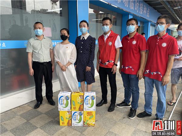 社工義工們在一線崗位上的忙碌身影,也映在了市民的眼里。連日來,已經(jīng)有不少企業(yè)、市民紛紛自發(fā)向接種點送來牛奶、水果等慰問品。來自羅湖的某企業(yè)代表王小姐表示,我們看到這些工作人員都非常辛苦,確實疫情期間大家都很不容易,只希望大家能共同努力,也希望這些微不足道的牛奶水果,能為工作人員們消除一些疲勞。
