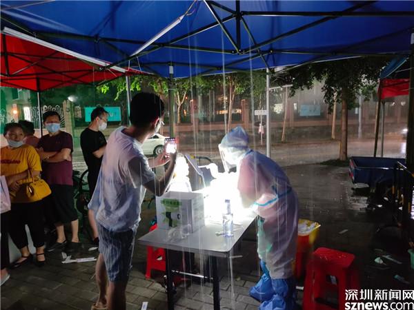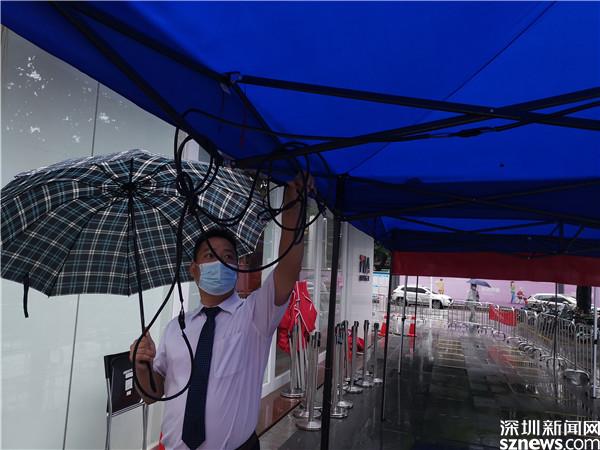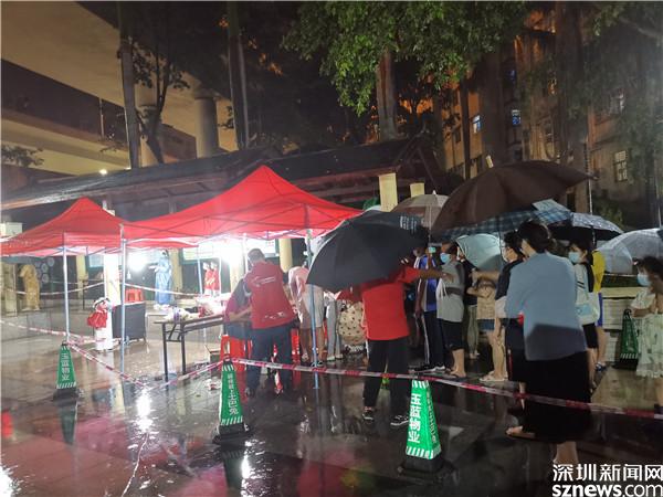 讀特客戶端·深圳新聞網(wǎng)20216月21日訊(記者 李慧)6月21日晚及6月22日一早,深圳雷雨交加,深圳市氣象臺(tái)2021年06月22日07時(shí)10分在多個(gè)區(qū)域發(fā)布暴雨紅色預(yù)警,羅湖也包括其中。有那么一群人,嚴(yán)陣以待、逆雨迎風(fēng),堅(jiān)守在抗疫一線。記者到各核酸檢測(cè)點(diǎn)看到,醫(yī)護(hù)人員和社區(qū)義工們?nèi)匀幻爸L(fēng)雨,堅(jiān)守在核酸采集的崗位上。