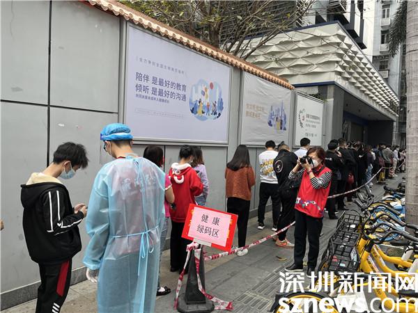 為了方便轄區(qū)居民、轄區(qū)企業(yè)員工核酸檢測,老圍社區(qū)在轄區(qū)內(nèi)設(shè)置了多個(gè)臨時(shí)核酸檢測點(diǎn)。楊紀(jì)歐每天不停地在老圍花園檢測點(diǎn)、名仕閣檢測點(diǎn)、禧程酒店檢測點(diǎn)、大劇院檢測點(diǎn)輪流運(yùn)送后補(bǔ)的物資,帶領(lǐng)著不同時(shí)間段的義工去到不同的核酸點(diǎn),安排好義工的工作內(nèi)容和交接。對(duì)一些新手義工,她都會(huì)手把手地教,如何查驗(yàn)綠碼和粵酸碼、如何維持秩序等。