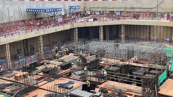 在施工現(xiàn)場(chǎng),著裝整齊的施工人員正頭戴安全帽、佩戴口罩,有序地投入施工建設(shè)。挖掘機(jī)、裝載機(jī)不停運(yùn)轉(zhuǎn)、轟鳴作響,現(xiàn)場(chǎng)一派熱火朝天的建設(shè)景象。