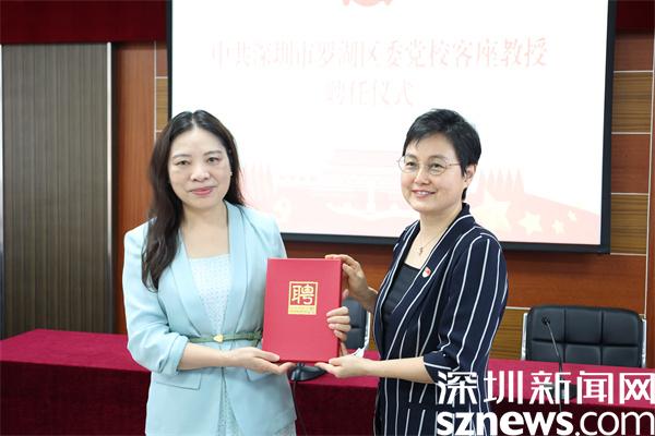 現(xiàn)場(chǎng),劉亞峰還為中共深圳市委黨校嚴(yán)紅梅副教授頒發(fā)聘書(shū),聘請(qǐng)其為羅湖區(qū)委黨??妥淌?。