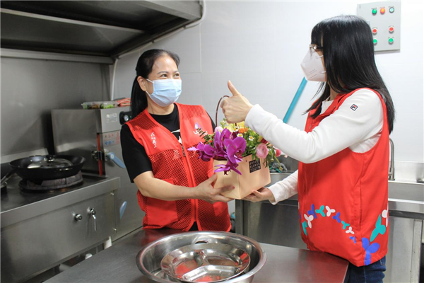 3月8日,是國際婦女節(jié),所有堅守在羅湖區(qū)桂園街道老圍社區(qū)抗疫一線的女性社區(qū)工作者、下沉人員、志愿者和醫(yī)務人員都收到了一個精美的小花籃,花籃里百合、玫瑰、蘭花等悠然綻放,芳香四溢,鼓舞了滿員士氣。