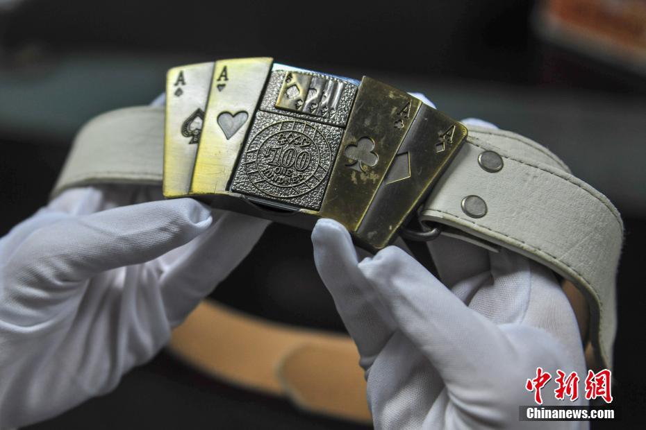 1月30日,遼寧沈陽,沈陽桃仙國際機場安檢中心工作人員展示腰帶打火機。當(dāng)日在沈陽桃仙國際機場,展示了近期被查獲的手機打火機、口紅打火機、腰帶打火機等各類打火機10余款。2018年春運工作從2月1日即將開始,為確保機場春運工作安全、正常、有序,沈陽桃仙國際機場安檢中心將加大檢查力度,嚴(yán)格執(zhí)行“三品”查堵制度,重點查處夾帶易燃易爆危險品乘坐飛機。中新社記者于海洋 攝