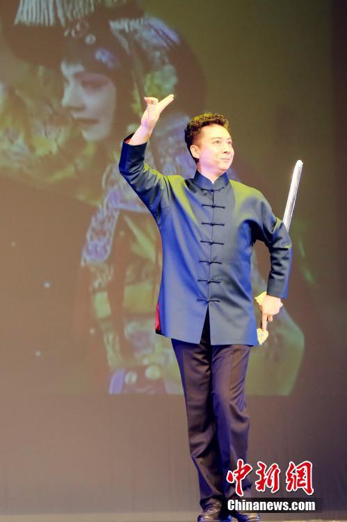 當?shù)貢r間2月25日晚,2018年“文化中國·四海同春”藝術(shù)團在美國南部城市休斯敦舉行慰僑綜藝晚會。圖為梅派第三代傳人胡文閣表演《霸王別姬》選段。休斯敦是2018年“文化中國·四海同春”藝術(shù)團赴美演出的首站,獲得休斯敦華人華僑的熱情回應(yīng)。其后,該藝術(shù)團還將奔赴美國奧蘭多、舊金山、芝加哥演出。中新社記者曾靜寧 攝