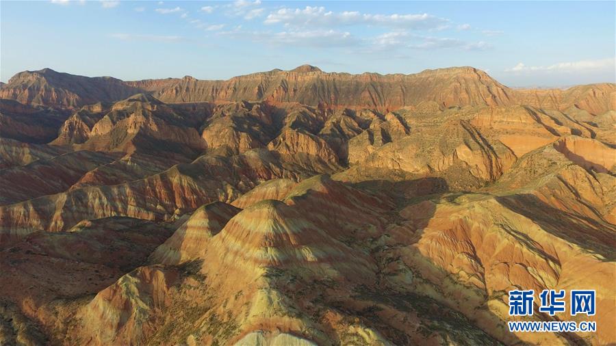 這是7月15日拍攝的蘭州樹屏丹霞地貌。蘭州樹屏丹霞國家地質(zhì)公園位于甘肅省蘭州市永登縣咸水河流域及其毗鄰地區(qū),分布在蘭州市所屬的永登縣、皋蘭縣、西固區(qū)、安寧區(qū),主體位于永登縣樹屏鎮(zhèn)、苦水鎮(zhèn)和西固區(qū)河口鎮(zhèn)。其主體地質(zhì)遺跡為丹霞和彩色丘陵,登高遠眺,綿延起伏,絢爛瑰麗,如同大自然創(chuàng)作的壯美油畫。新華社記者陳曄華 攝