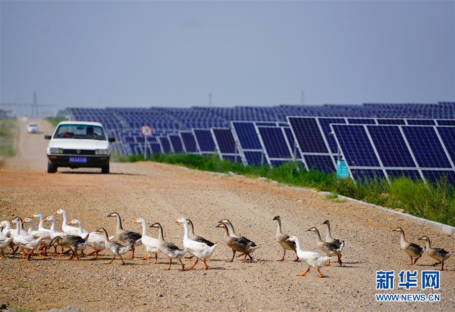 這是內(nèi)蒙古鄂爾多斯市杭錦旗庫布其沙漠生態(tài)太陽能光伏光熱治沙發(fā)電綜合示范地(8月1日攝)?!鞍迳习l(fā)電、板下種草、板間養(yǎng)殖”,目前該太陽能發(fā)電項(xiàng)目治沙面積達(dá)到了13.3平方公里,每年發(fā)電5億千瓦時(shí),實(shí)現(xiàn)銷售收入4.5億元。其社會(huì)效益、生態(tài)效益、民生效益、經(jīng)濟(jì)效益十分顯著。 巍巍陰山南麓,鄂爾多斯高原之北,橫臥著一條長約400公里、寬5-65公里的黃色“長龍”。它似弓弦,將滔滔黃河拉出一個(gè)大大的“幾”字彎。 這是中國第七大、也是距北京最近的沙漠——庫布其沙漠,曾經(jīng)寸草不生,風(fēng)沙肆虐,被稱為“死亡之海”。 幾十年來,庫布其人一代接著一代干,書寫了一部荒漠化治理的英雄史詩。 新華社記者 邢廣利 攝