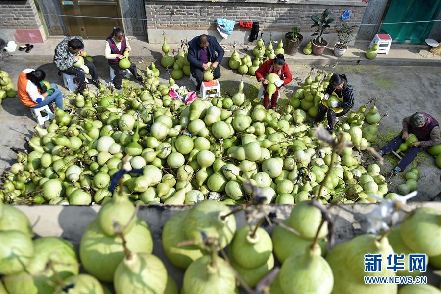 9月27日,山西省安澤縣和川鎮(zhèn)孔旺村的村民將葫蘆去皮。近日,山西省安澤縣和川鎮(zhèn)孔旺村種植的葫蘆喜獲豐收,村民們忙著將摘下的葫蘆去皮晾干。孔旺村于2016年成立葫蘆種植合作社,種植、采摘、加工等環(huán)節(jié)全部由貧困戶(hù)負(fù)責(zé),為貧困戶(hù)拓寬增收渠道。新華社記者 曹陽(yáng) 攝