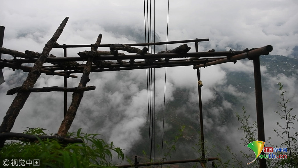 2018年8月3日,四川涼山懸崖村貨運索道。圖片作者:莫曉