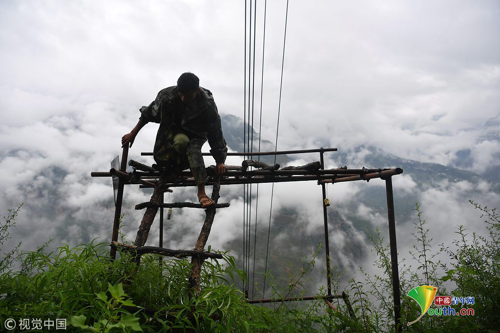 2018年8月3日,四川涼山懸崖村貨運索道。上山一趟只要幾十分鐘。片作者:莫曉