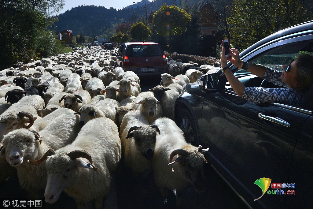 綿陽過馬路,司機(jī)被阻斷停下拍照。