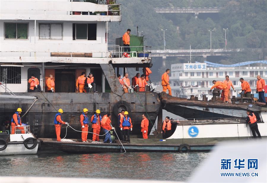 這是10月29日拍攝的重慶萬(wàn)州公交車墜江事故救援現(xiàn)場(chǎng)。