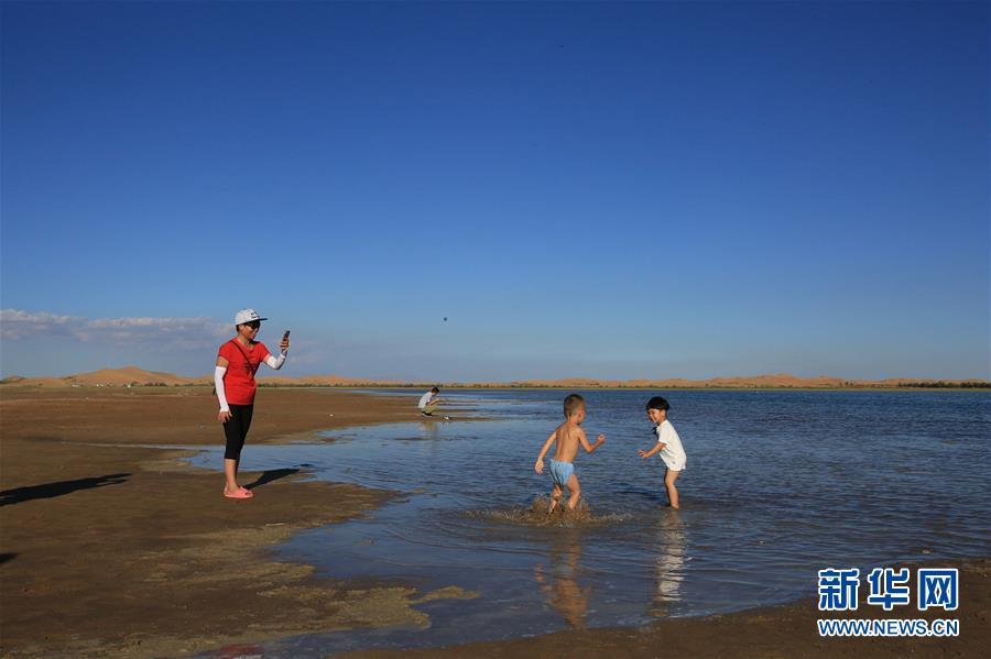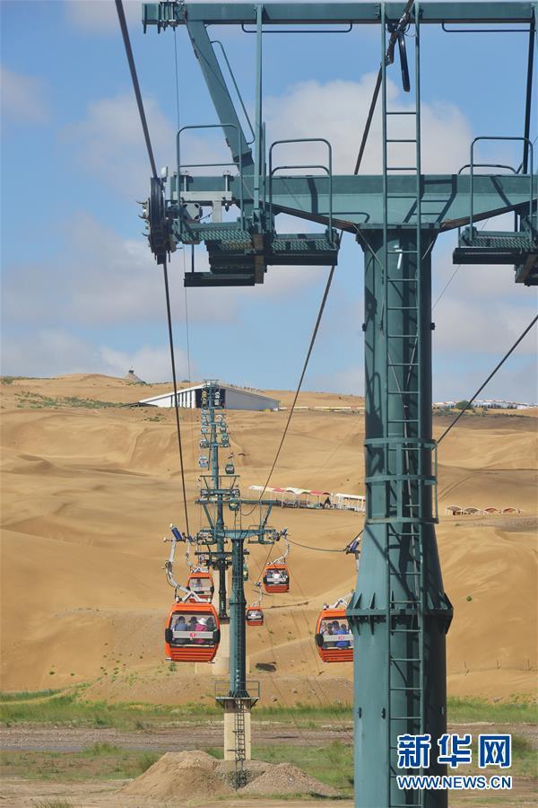 游客在庫(kù)布其沙漠中的內(nèi)蒙古鄂爾多斯市達(dá)拉特旗響沙灣景區(qū)的沙地上蕩秋千(7月31日攝)。依托庫(kù)布其沙漠特有的自然風(fēng)光和多年生態(tài)建設(shè)的成果,當(dāng)?shù)亟ǔ身懮碁场⑵咝呛⒍鞲褙惖壬鷳B(tài)旅游景區(qū)。近十年來(lái),鄂爾多斯市生態(tài)旅游景區(qū)累計(jì)接待游客近1000萬(wàn)人次,實(shí)現(xiàn)收入24.6億元。