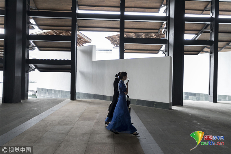 2016年11月16日,浙江烏鎮(zhèn),第三屆世界互聯(lián)網(wǎng)大會首日,身著群青鸞鳳刺繡旗袍的大學(xué)生禮儀賣萌自拍,成為會議間隙的一道風(fēng)景。