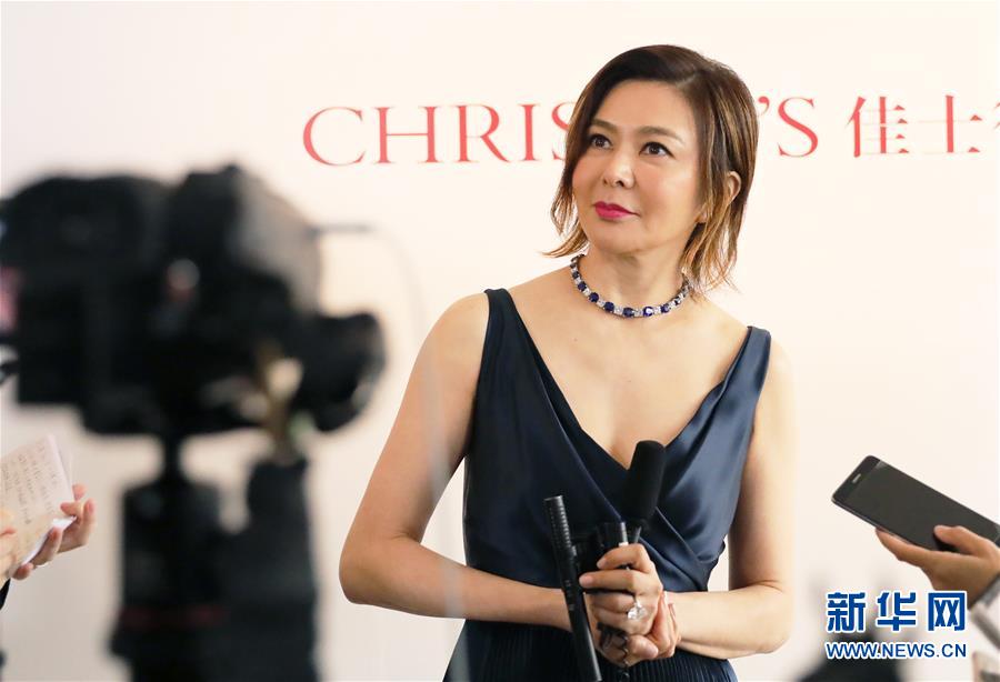 11月5日,香港藝人關之琳在展示“孔雀”項鏈。