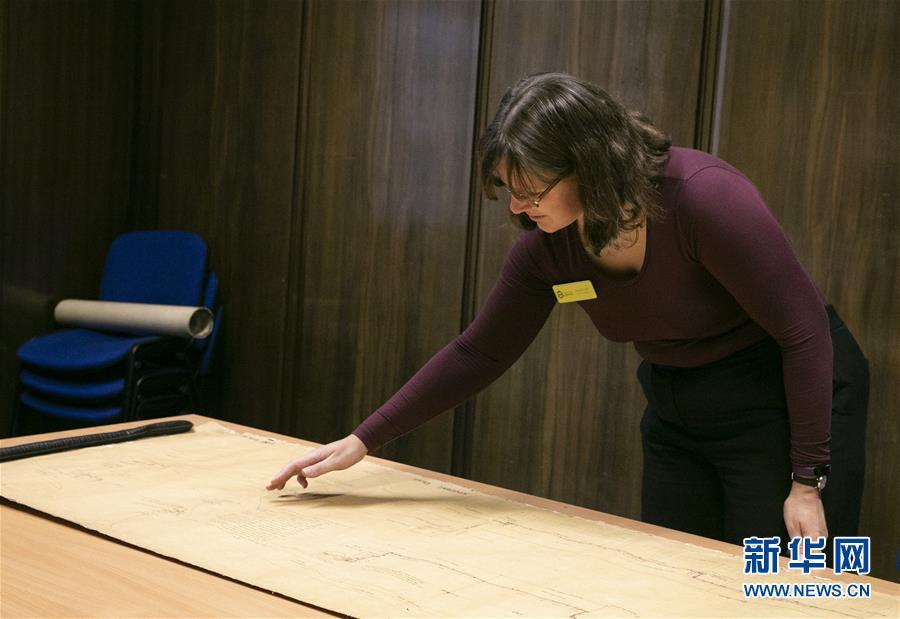 11月2日,在英國紐卡斯?fàn)柕奶┒鳌枡n案館,檔案管理員瑞秋·吉爾介紹致遠(yuǎn)艦設(shè)計(jì)圖紙。 新華社記者日前在紐卡斯?fàn)柼┒鳌枡n案館查找北洋海軍史料時(shí)發(fā)現(xiàn)一套七張、檔案名為“中國巡洋艦舵機(jī)設(shè)計(jì)圖”的原始圖紙。塵封百年,甲午海戰(zhàn)中抗擊日艦后沉沒的清北洋海軍致遠(yuǎn)艦部分原廠設(shè)計(jì)圖紙?jiān)谄浣ㄔ斓亍~卡斯?fàn)柺械囊患覚n案館首次被發(fā)現(xiàn),為打撈那段悲壯的歷史提供了重要參考。 新華社記者 韓巖 攝