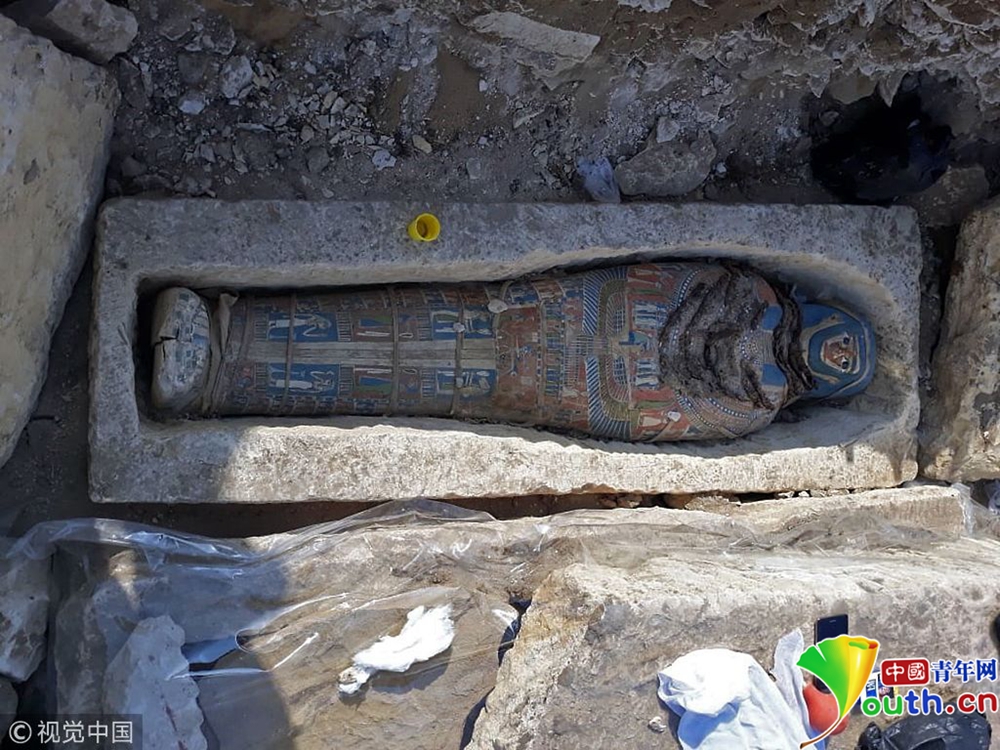 當(dāng)?shù)貢r(shí)間2018年11月24日,埃及盧克索,考古學(xué)家在當(dāng)?shù)匕l(fā)掘出一處墓穴,在其中發(fā)現(xiàn)石棺、木乃伊等文物,時(shí)間可追溯至公元前4-7世紀(jì)。