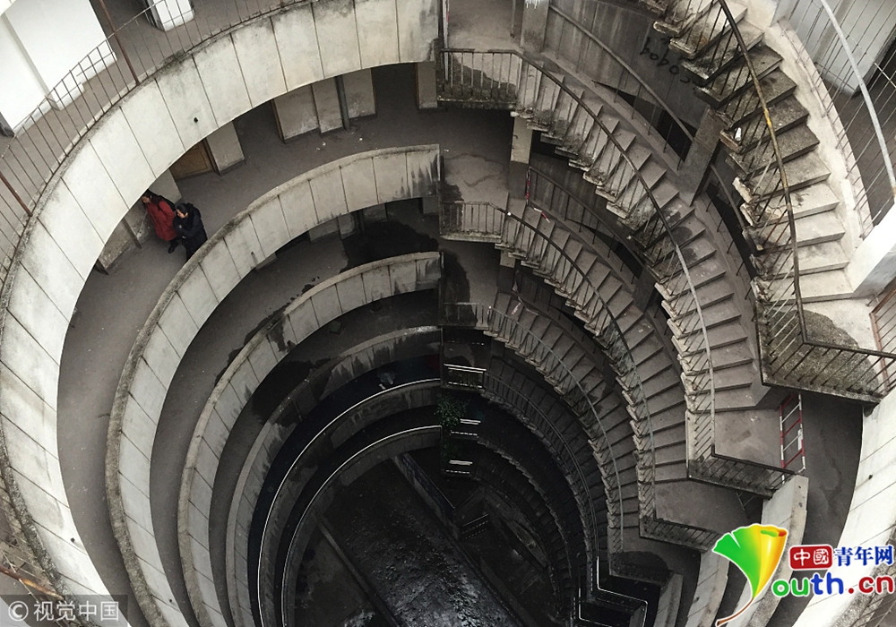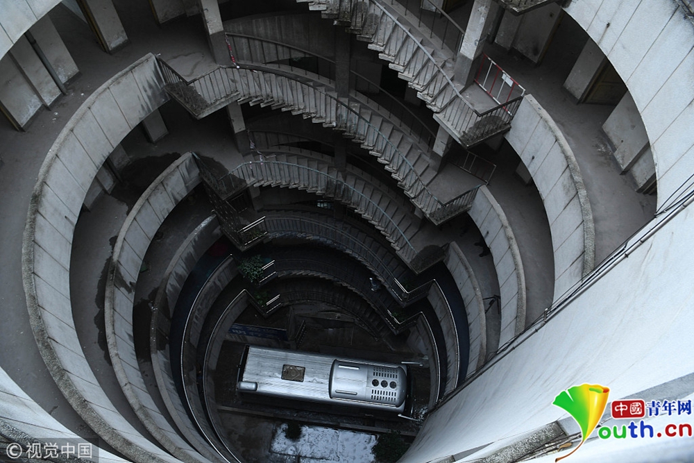 重慶洋人街景區(qū)內(nèi)的穿樓觀光索道吸引不少游客體驗(yàn)。據(jù)悉,跨度長1000米的觀光索道將隨著洋人街的拆遷而搬離。中新社記者陳超 攝 2017年9月27日,重慶,南岸區(qū)某小區(qū)的“螺旋”停車場,從公路到車庫要下5層樓,司機(jī)需要轉(zhuǎn)無數(shù)個360度圈。圖片來源:視覺中國