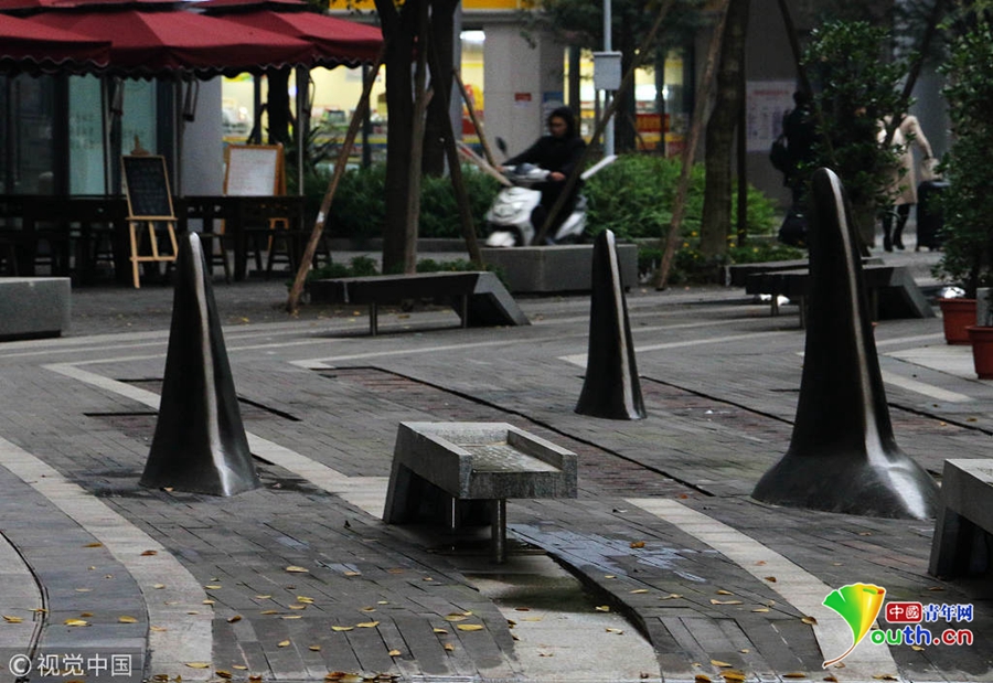 對于這種設(shè)計(jì),不少市民覺得比較精巧的,遠(yuǎn)遠(yuǎn)地望去,就好像在海面上露出魚鰭的一群鯊魚,不僅可以防止被車輛占道,而且還有點(diǎn)裝飾的效果。