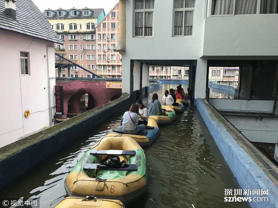 2018年6月20日,重慶涪陵,紅酒小鎮(zhèn)人工運(yùn)河全長近5公里,2009年開建,先期依梨香溪岸線而建,后期隨著景區(qū)的發(fā)展,運(yùn)河逐漸拓展為高架橋的“空中運(yùn)河”,穿樓而過的“室內(nèi)運(yùn)河”,穿水上樂園而過的“水中運(yùn)河”。為確保一個水平面,運(yùn)河見房穿洞,過路搭橋,游客乘坐觀光船或蕩舟其中成為一道獨(dú)特的風(fēng)景線。隨著8D魔幻重慶的不斷走紅,該景區(qū)的網(wǎng)紅運(yùn)河正受到游客的喜愛與“打卡”。