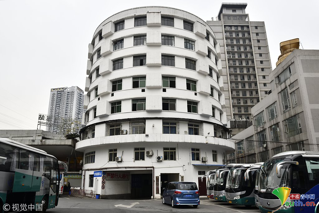 2018年12月6日,重慶江北紅旗河溝汽車站內(nèi),有一棟獨(dú)特的八層圓環(huán)狀建筑,底層每天有不少進(jìn)出站的客車通行。