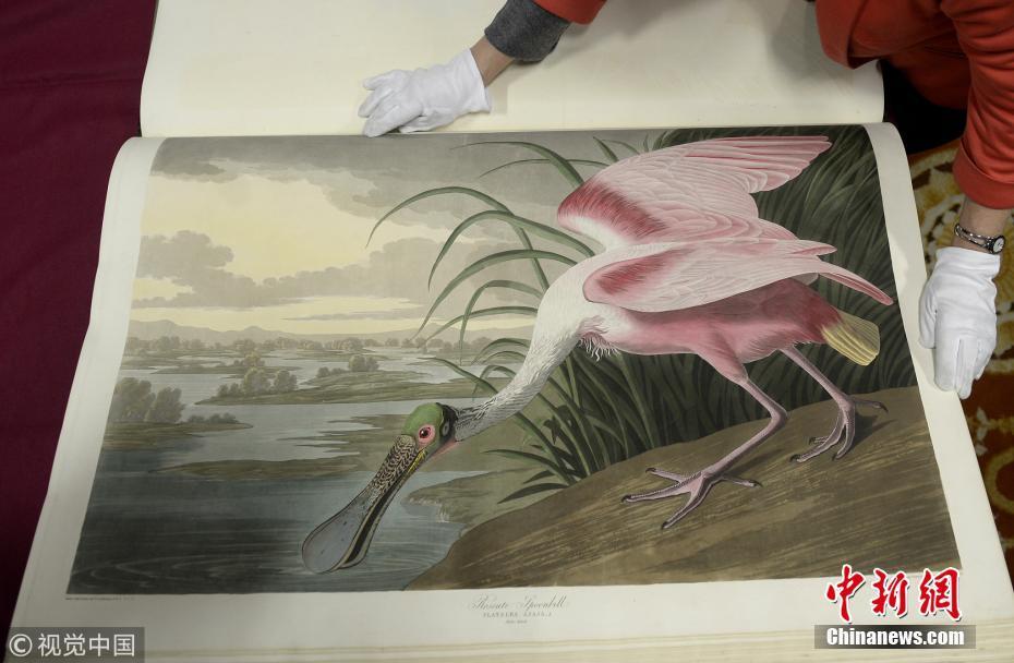 今年夏天,《美國(guó)鳥類》在紐約拍賣,最后以965萬(wàn)美元的價(jià)格成交。這本珍貴的書被鎖在一個(gè)特殊的保險(xiǎn)庫(kù)里,但它屬于公眾,任何人都可以提前預(yù)約并在工作人員監(jiān)督下翻閱。圖片來(lái)源:視覺(jué)中國(guó)