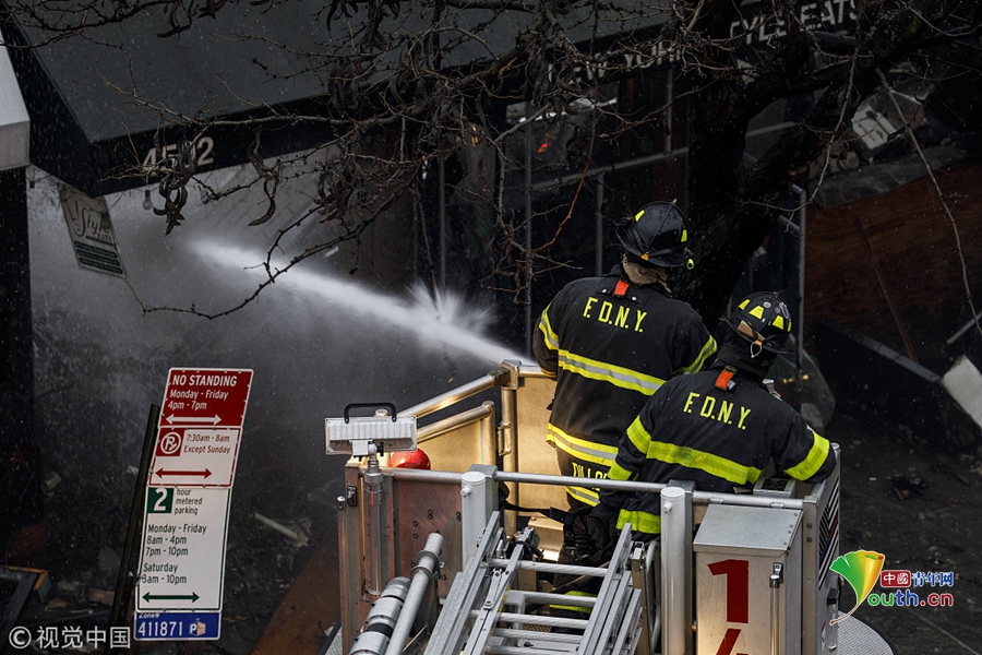 美國(guó)紐約發(fā)生大火吞噬六家商鋪 消防員撲滅火災(zāi)余燼